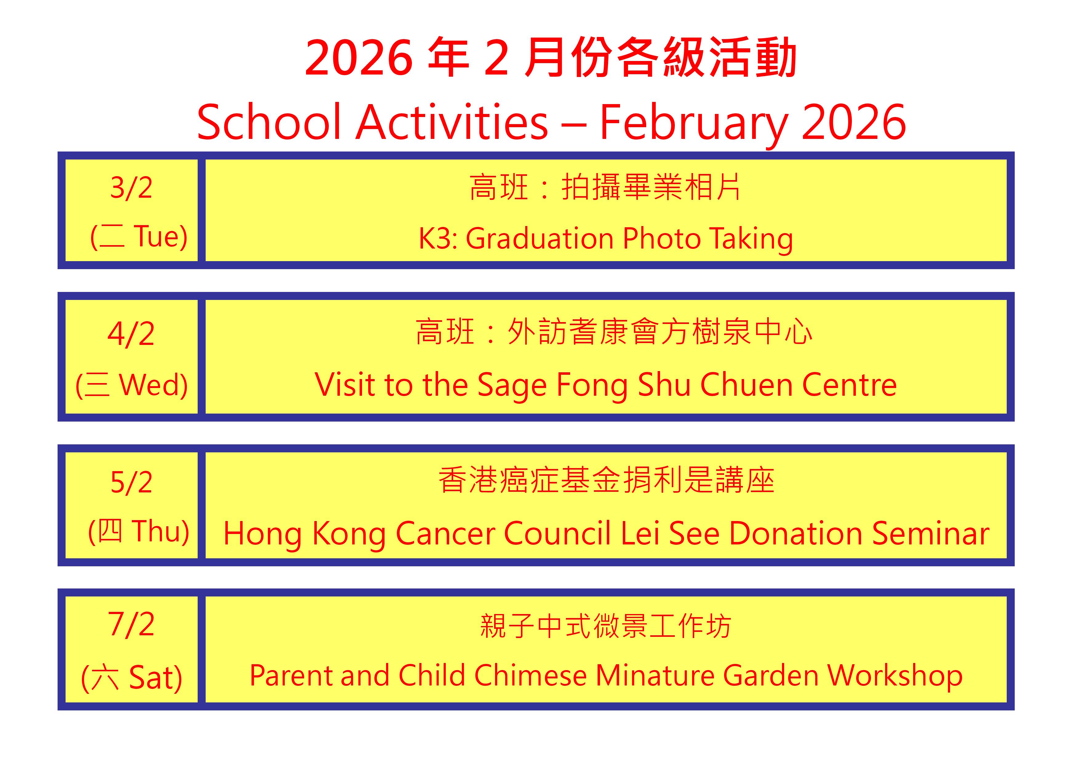 學生茶點表 (2月)