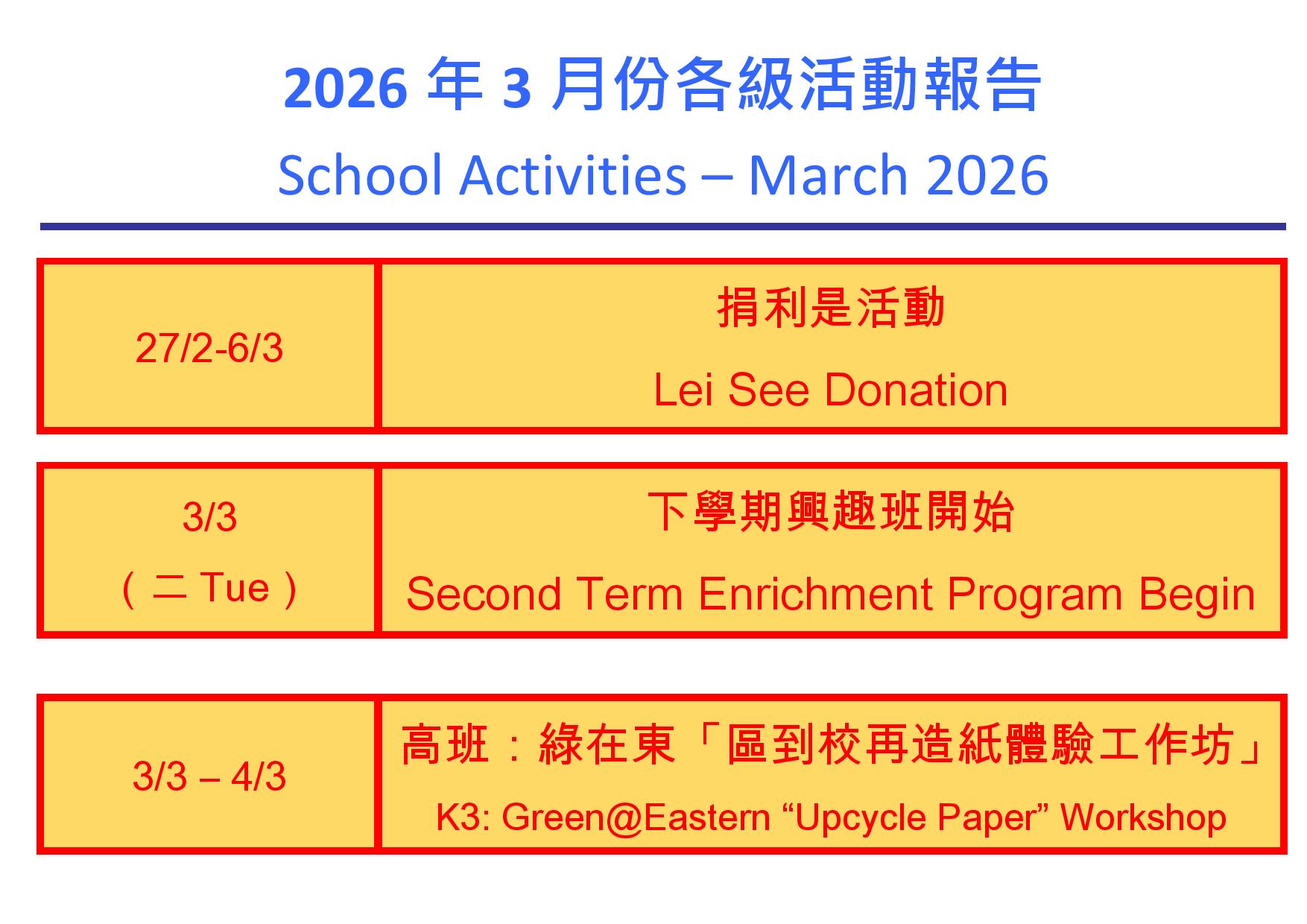 學生茶點表 (3月)